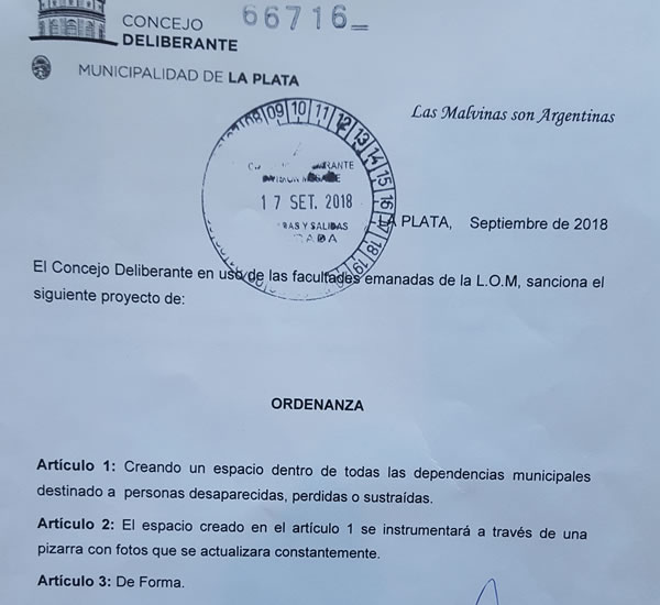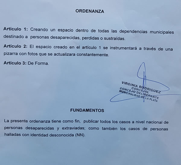Creación espacio en dependencias municipales s/personas desaparecidas